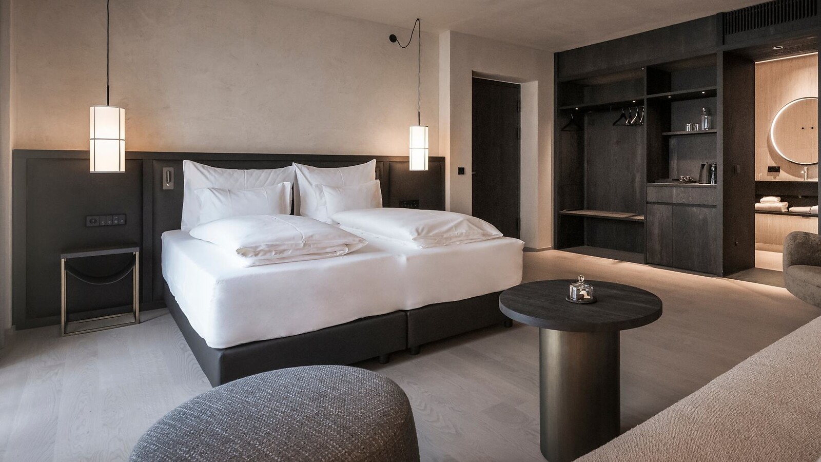 Noch mehr Platz, noch mehr Freiheit: In der Eisenhut Superior Suite entspannen Sie ganz natürlich zwischen edlem Holz und natürlicher Lehmverputze, romantisch als Paar oder mit zwei besten Freunden! Sie blicken entweder weit über die Stadtdächer oder direkt auf die begrünten Innenhöfe des Hauses. Für kleine Relax Momente steht eine stilvolle Ruhe-Ecke bereit.