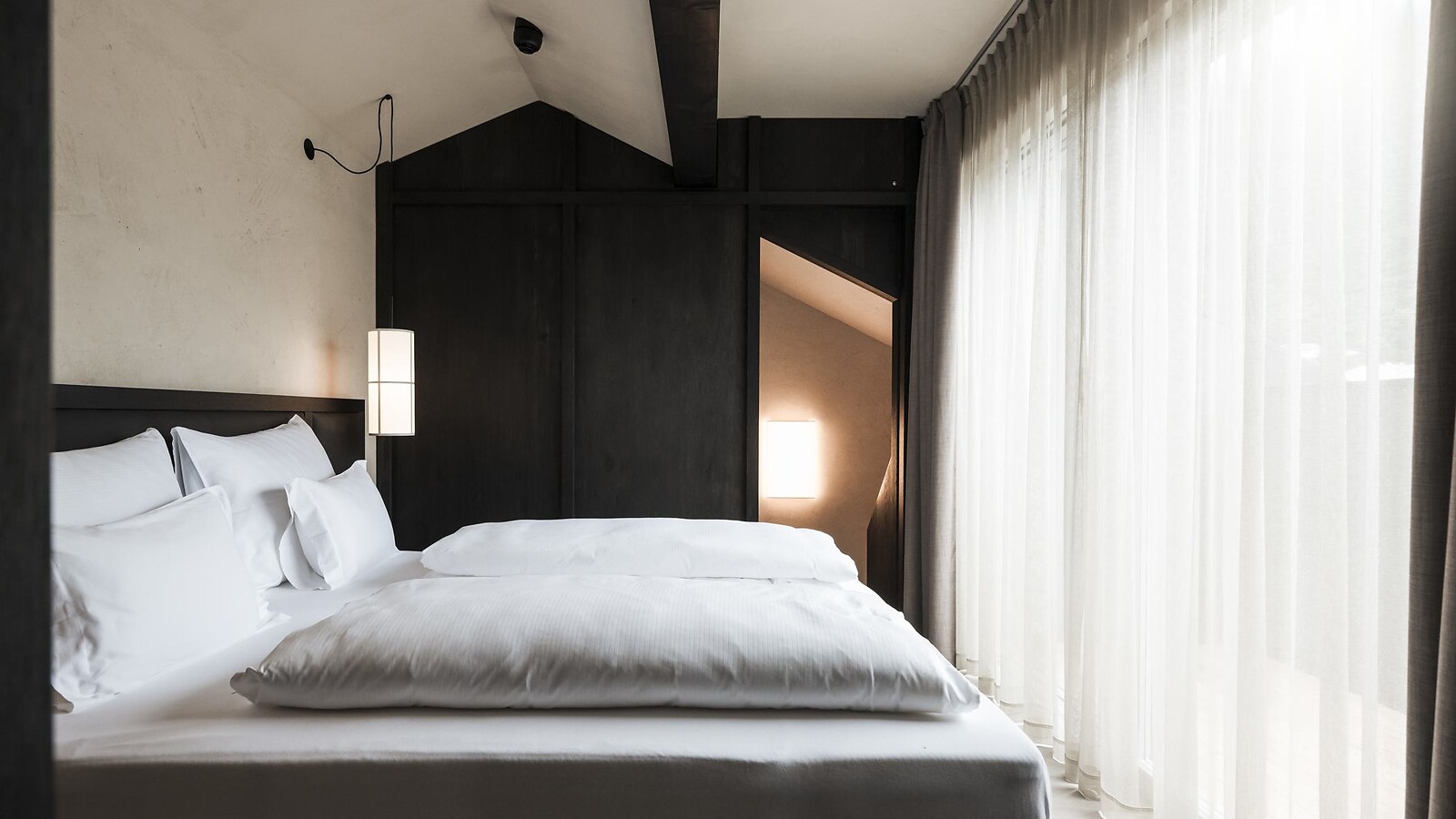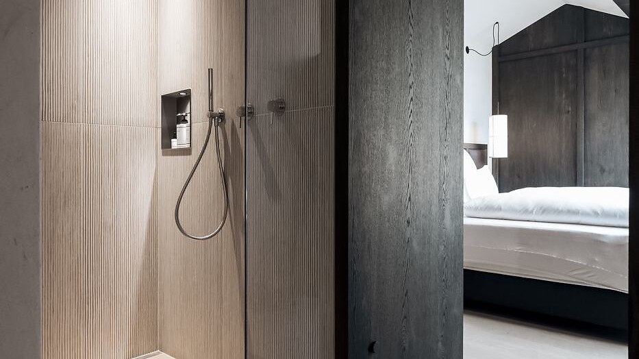 One of a kind! The Rosengarten Grand Suite is the jewel of the Eisenhut Boutique Hotel, luxurious down to the smallest detail without overshadowing its natural charm. It spans two floors, featuring elegant wood, natural clay plaster, and warm fabrics. Wake up with a view of the Catinaccio/Rosengarten bathed in morning light, retreat to your private sauna whenever you wish, and end the day by the crackling fire on your terrace. For those seeking exclusivity and elegance, this is the perfect choice – whether as a couple, a pair of couples, a family, or with friends!