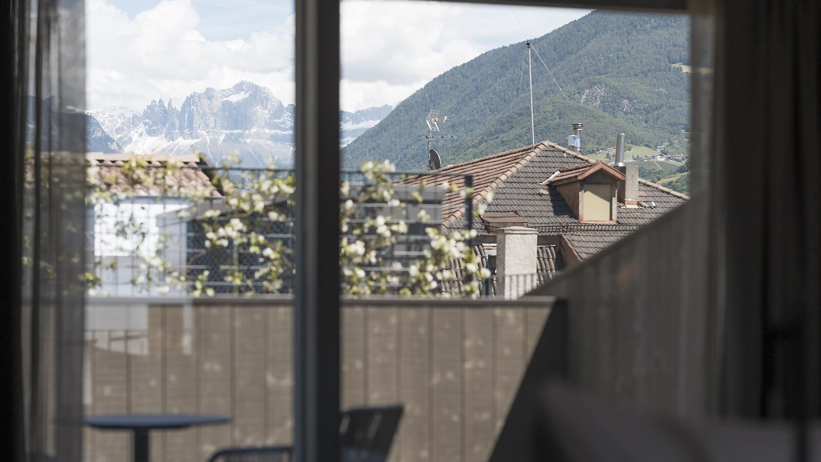 As promising as its name sounds, staying in this suite is equally enchanting. Located exclusively beneath the mansard roof, it offers uninterrupted views over Bolzano’s rooftops. On the balcony, enjoy a prime spot to watch the evening light illuminate the peaks of the Catinaccio/Rosengarten, and in the bedroom, immerse yourself in the warm water of the free-standing bathtub. Elegant wood, clay plaster, and warm fabrics create a perfect atmosphere for discerning couples.